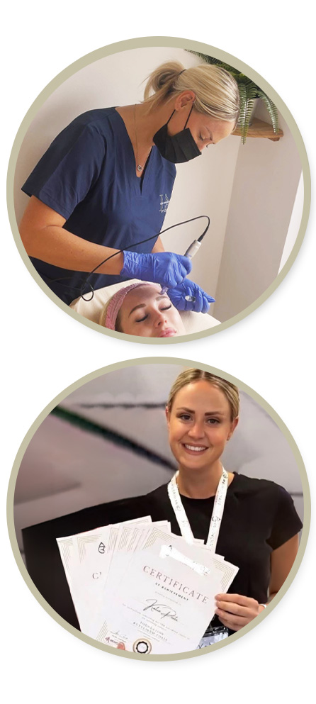 Katie regularly participates in CPD-accredited conferences and advanced workshops, ensuring she remains up to date with the latest evidence, techniques, and best practices within aesthetic medicine. This commitment allows her to continually refine her skills and deliver treatments aligned with current standards and innovations.